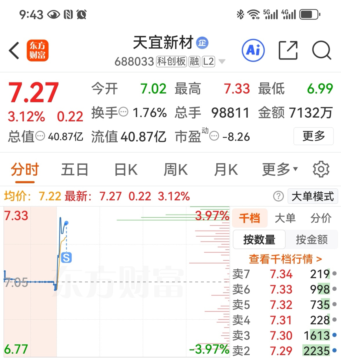 $天宜新材(SH688033)$ 继续卖一点,涨起来要谢谢我。