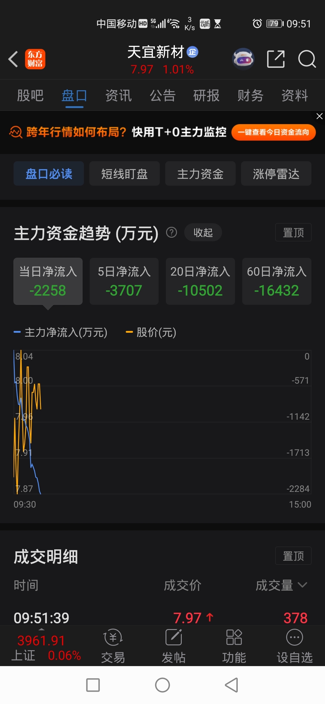$天宜新材(SH688033)$ 股价上来了,为什主力还是净流出呢