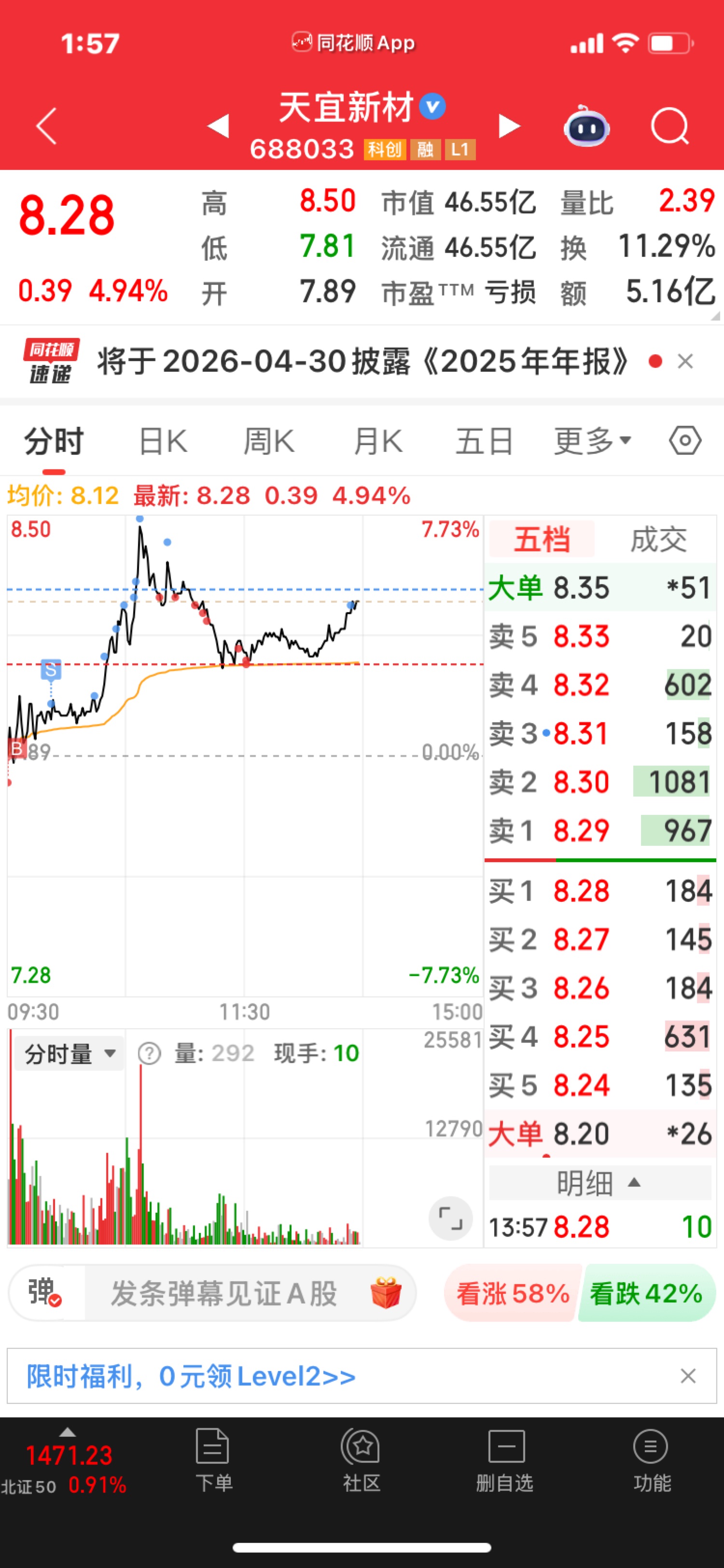 $天宜新材(SH688033)$