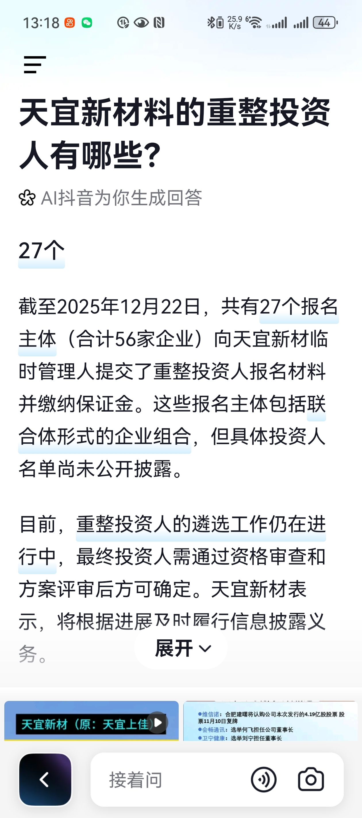$天宜新材(SH688033)$