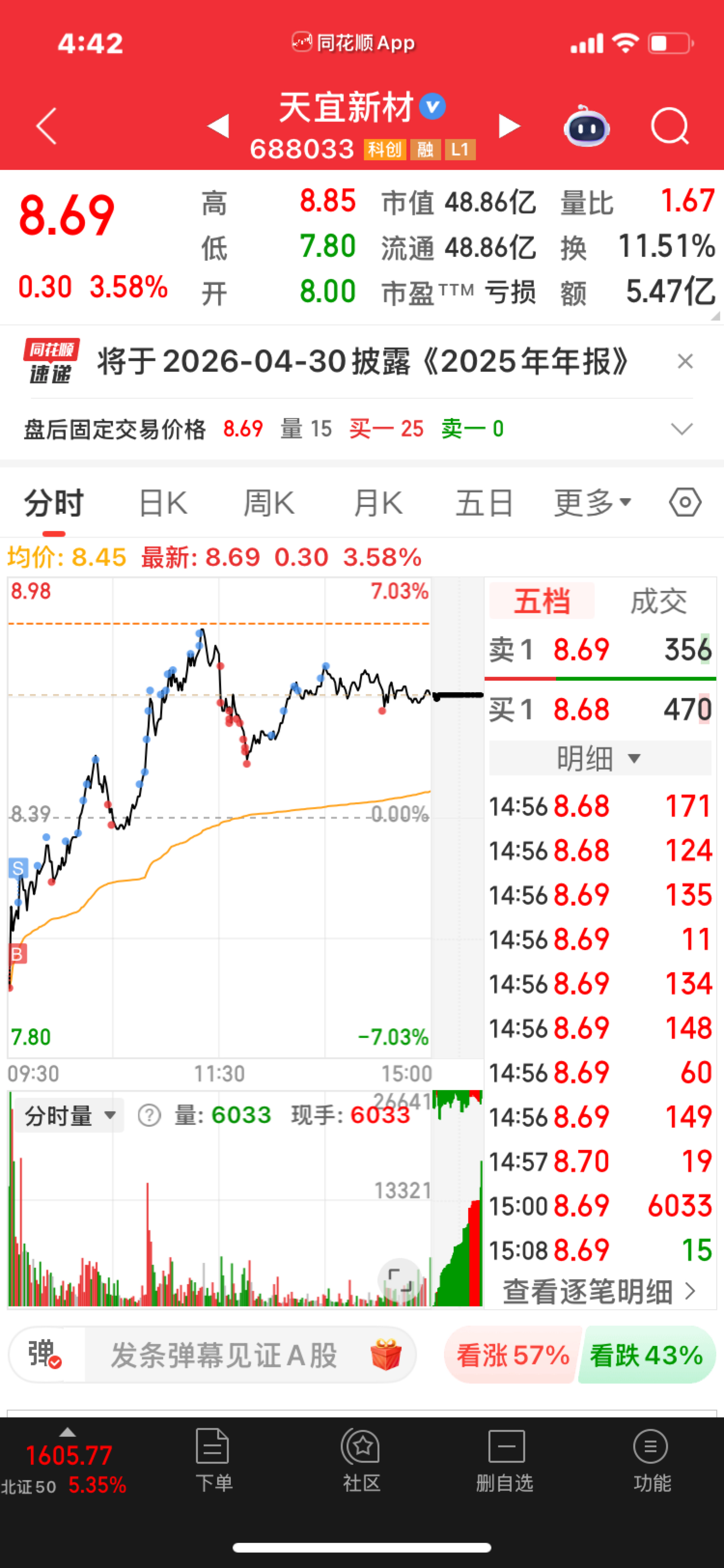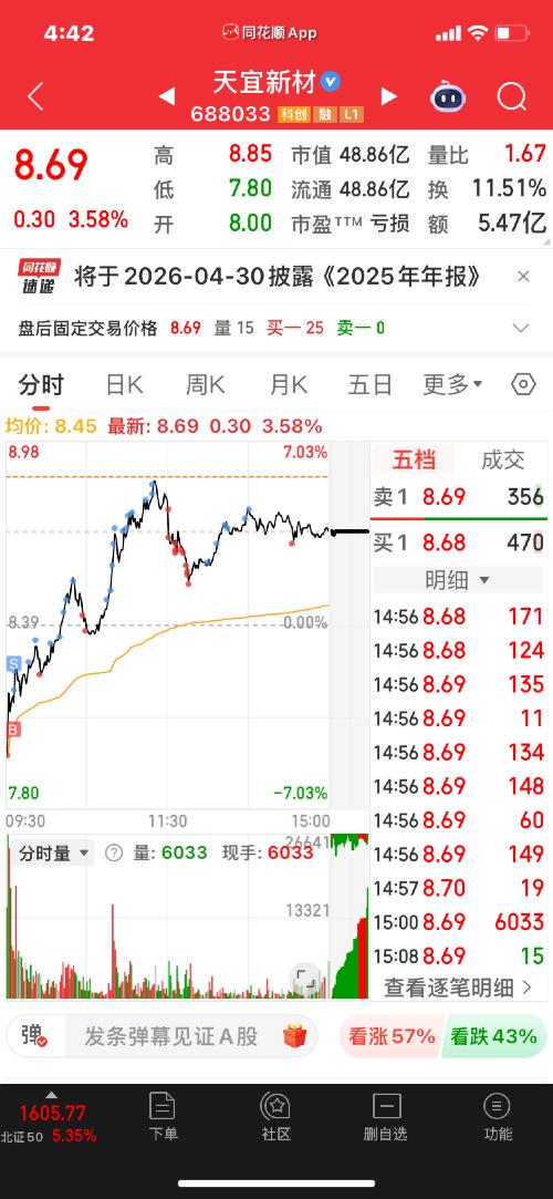 $天宜新材(SH688033)$  突然有个好奇,今天早上开盘有8块以下买的吗???太好奇了……