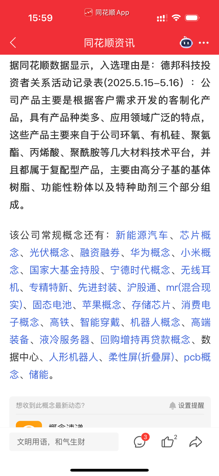 $德邦科技(SH688035)$ 两个软件概念差好多,能不能添加上去人行机器人,国产芯片,先进封装,新材料等