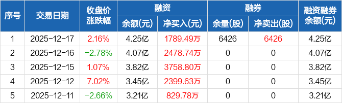德邦科技:融资余额4.25亿元,创历史新高(12-17)