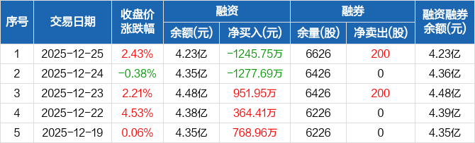 德邦科技:融资净偿还1245.75万元,融资余额4.23亿元(12-25)