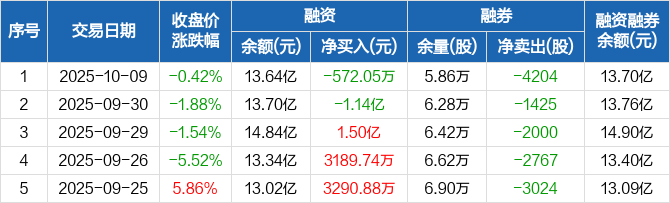 传音控股:融资净偿还572.05万元,融资余额13.64亿元(10-09)