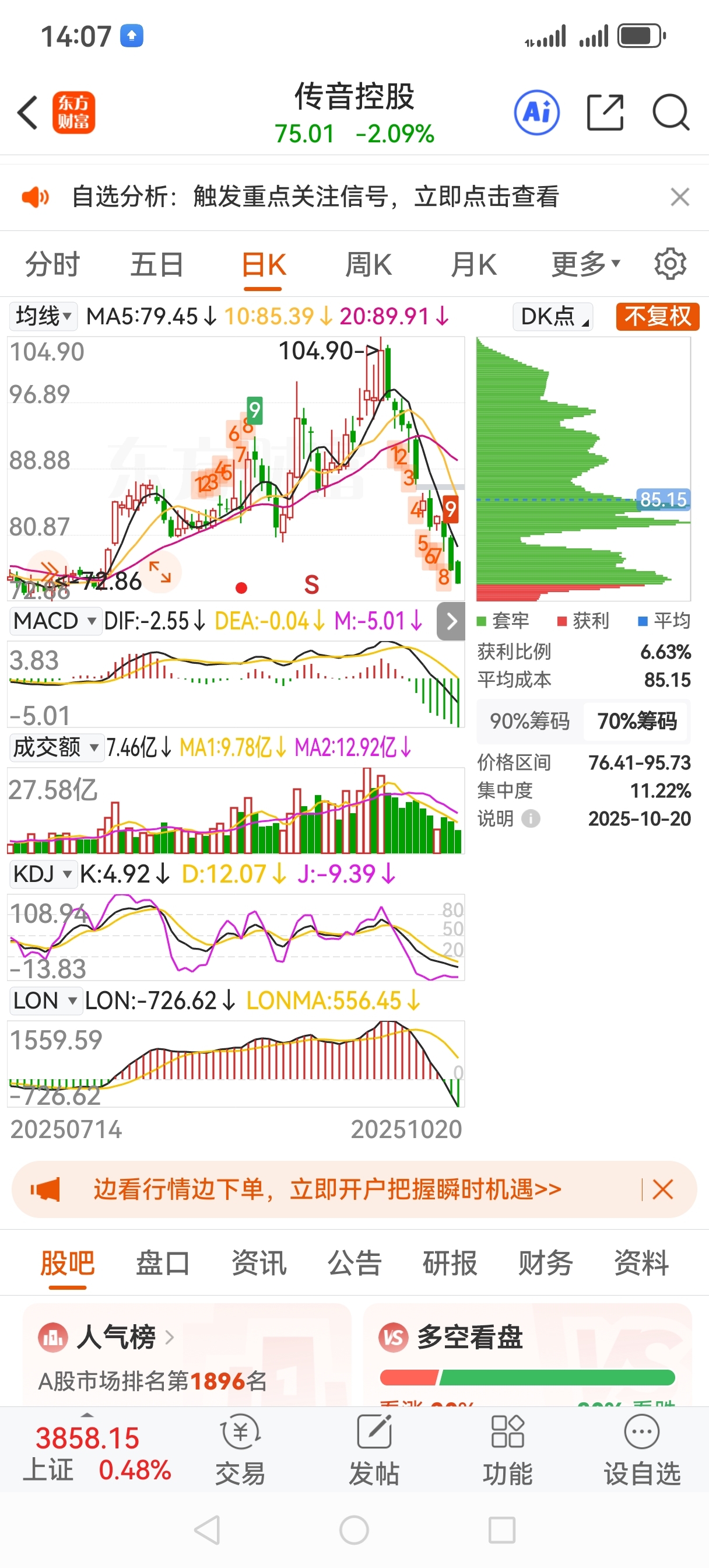 $传音控股(SH688036)$ 获利极少,弟兄们拿住了。不给筹码