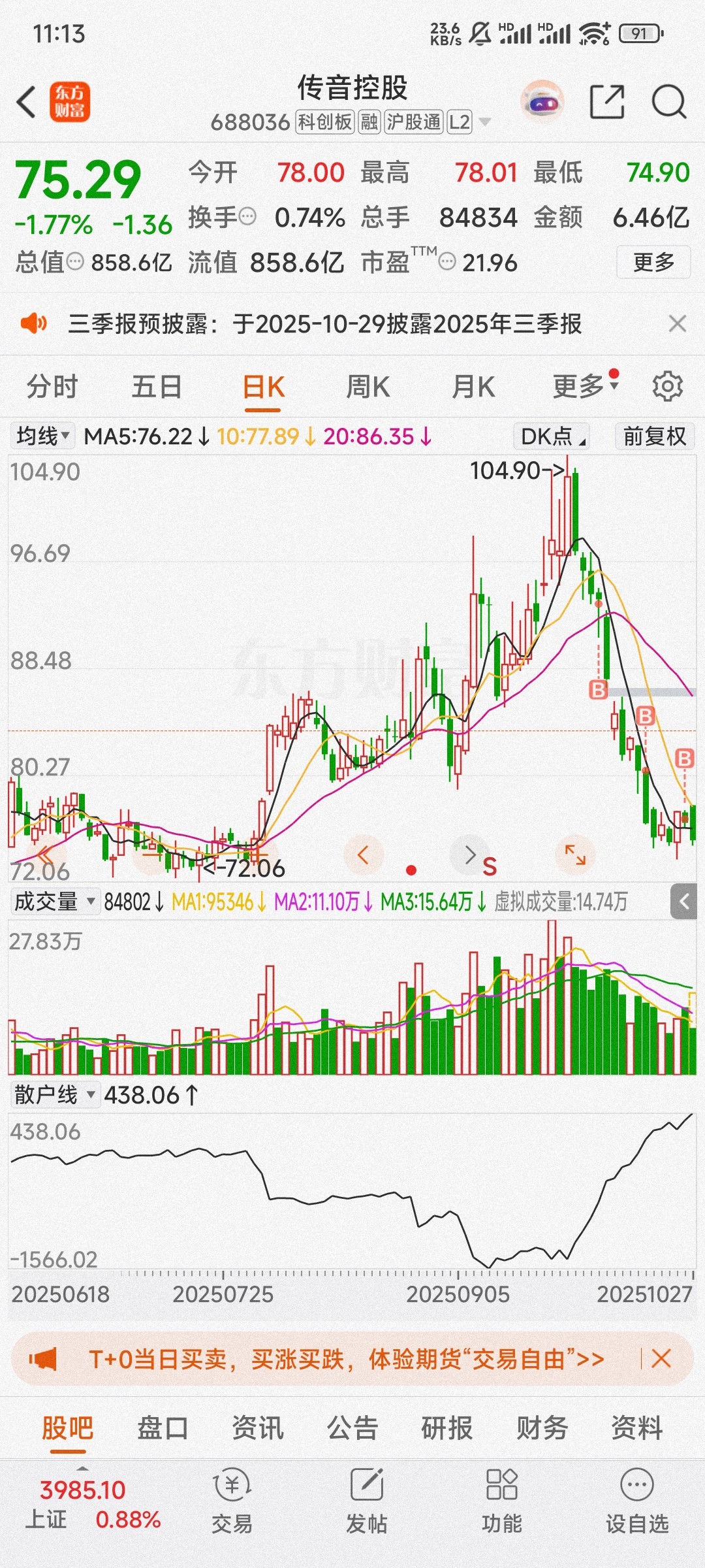 $传音控股(SH688036)$ 一路补,一路跌,一把辛酸泪