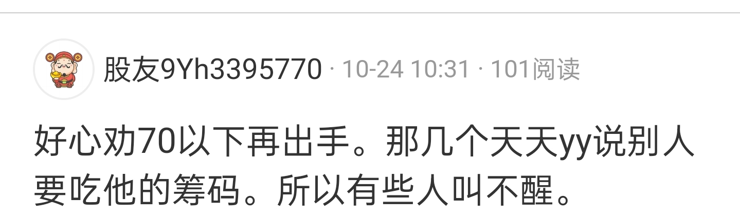 温馨提示: 1.根据《证券法》规定,禁止编造、传播虚假信息或者误导性信息,扰乱证券市场;2.用户在本社区发表的所有资料、言论等仅代表个人观点,与本网站立场无关,不对您构成任何投资建议。用户应基于自己的独立判断,自行决定证券投资并承担相应风险。《东方财富社区管理规定》