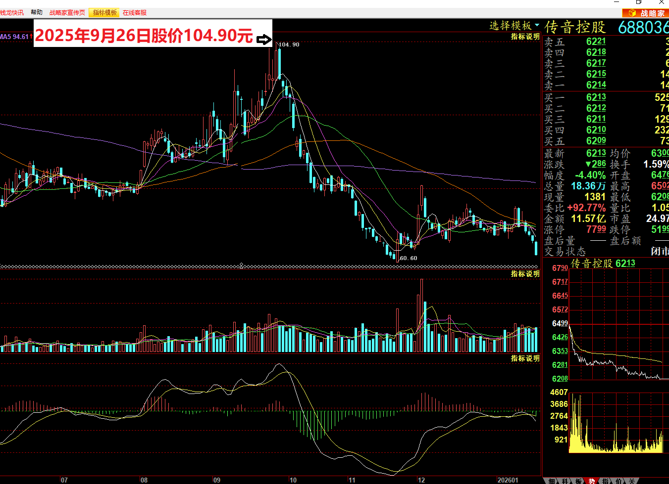 老万判断它上市六年后股价开始暴跌,之王是2019年9月30日上市,六年后就是2015年9月29日,2025年9月26日股价104.90元,开始暴跌,老万判断基本准确,接下来就是总市值80亿左右,慢慢看戏,中国股市,快乐无比
