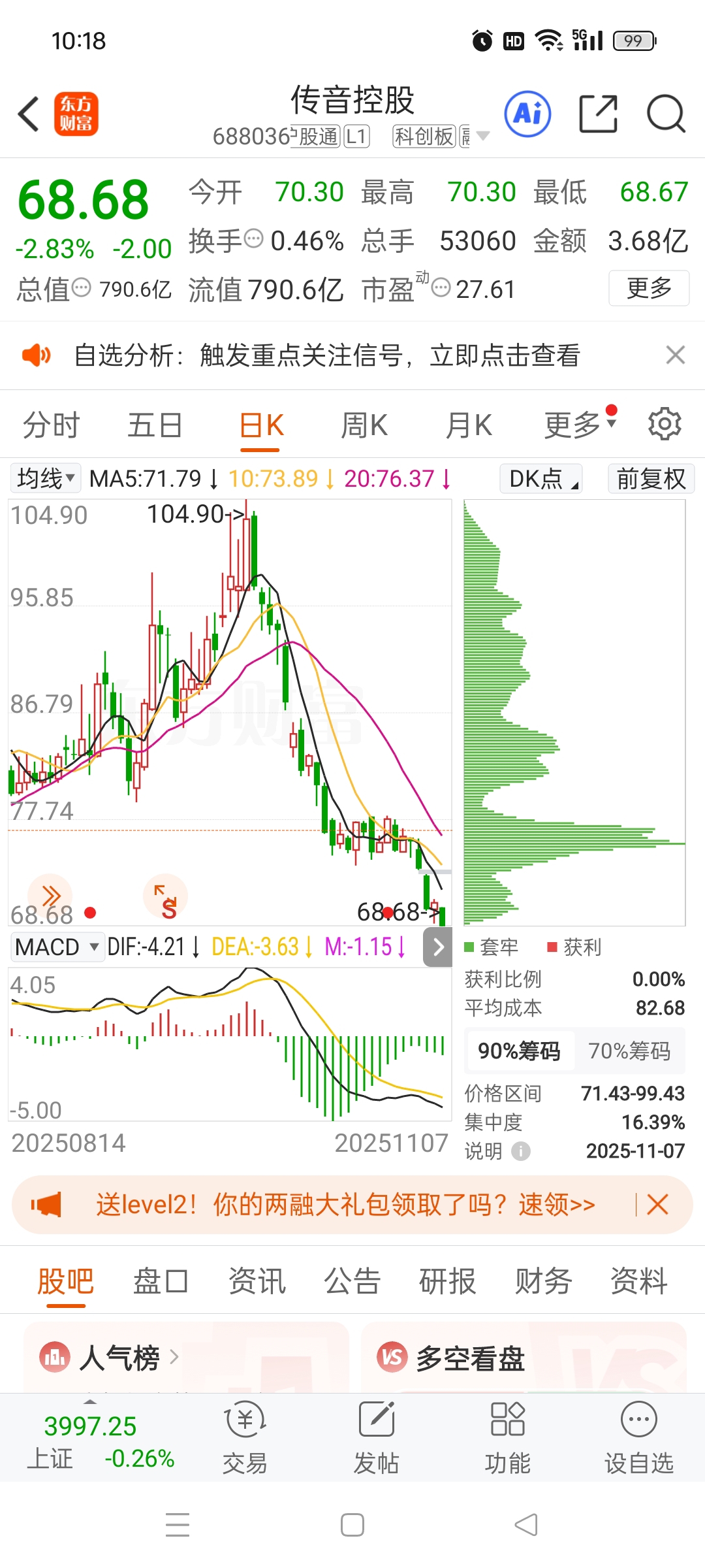 $传音控股(SH688036)$ 主力成本82左右,这么不计成本的砸,发生了什么
