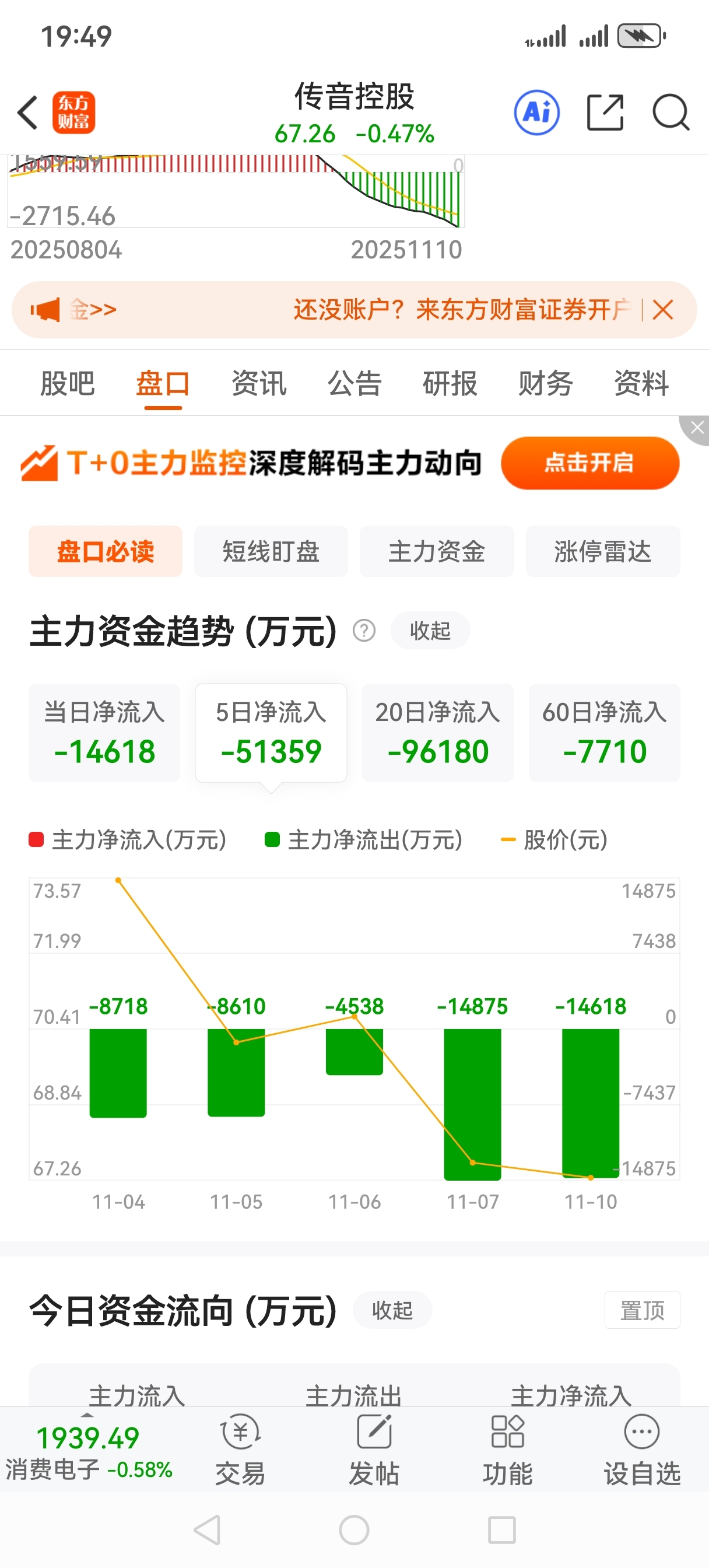 $传音控股(SH688036)$ 主力天天就干一件事。跑跑跑!