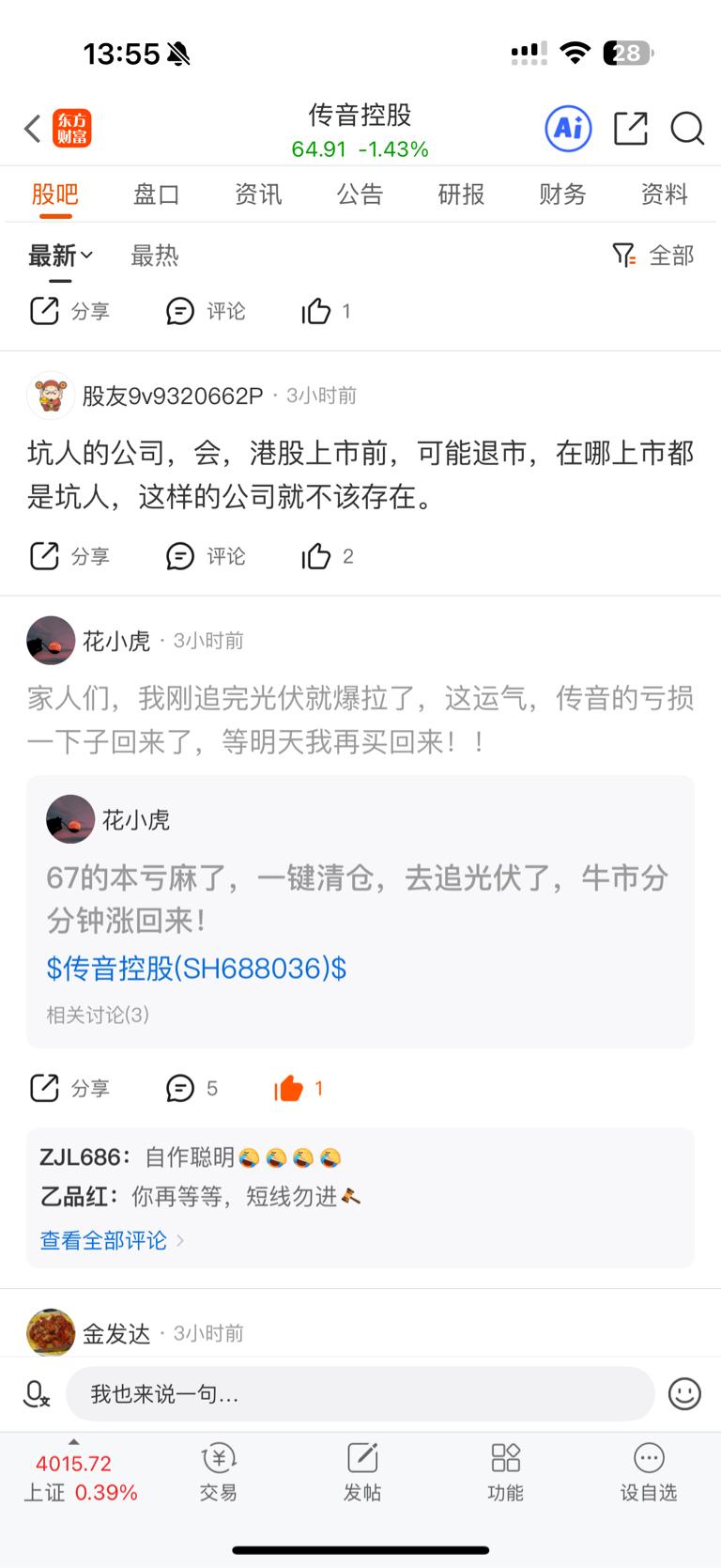 $传音控股(SH688036)$ 留言还告诉了吧友买的哪个股票