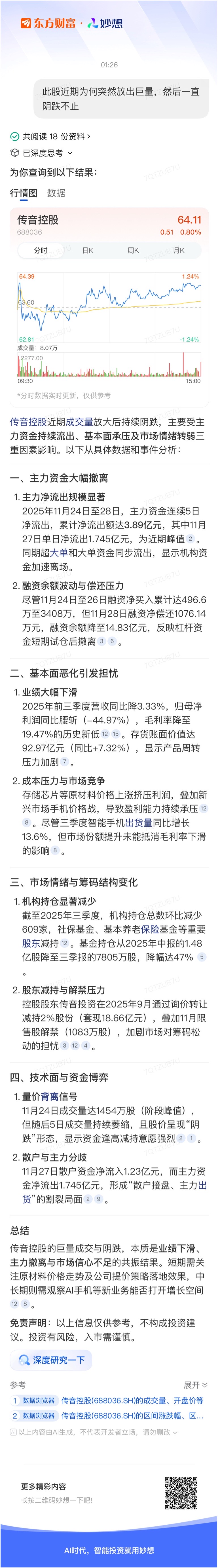 $传音控股(SH688036)$ 散户接盘,主力出货,传音牌收割机!