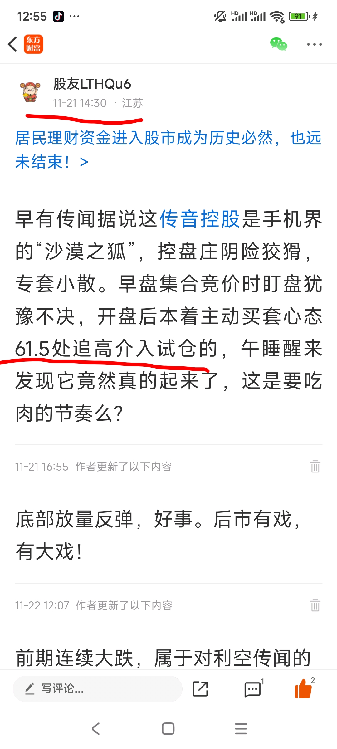 传音这票,从它自百元之上无底线持续下挫开始就早已引起我的注意,但真正介入也只是10天之前的11月21日,当日大盘重挫之际,传音创60.60元新低后竟逆势直线中阳,其后它竟然用了整整一个完整的交易周持续震仓洗盘,可见控盘机构的阴毒、狡诈与变态,果真是“狂奔于非洲大陆的沙漠之狐”。