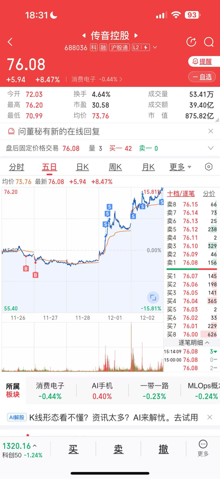 $传音控股(SH688036)$ 昨天这清仓走得漂亮,分批次走,这走势够漂亮