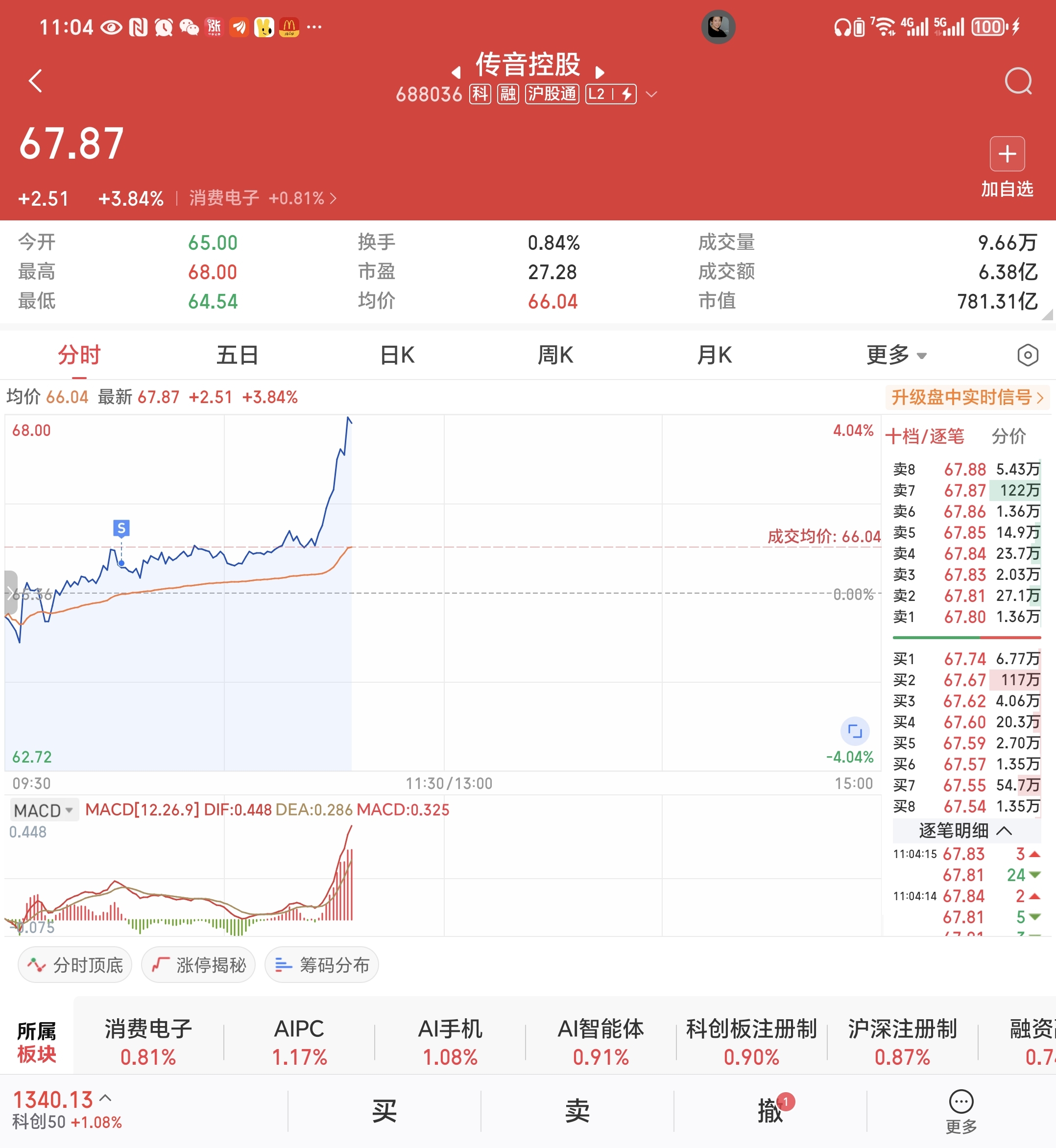 $传音控股(SH688036)$ 感谢我这颗韭菜