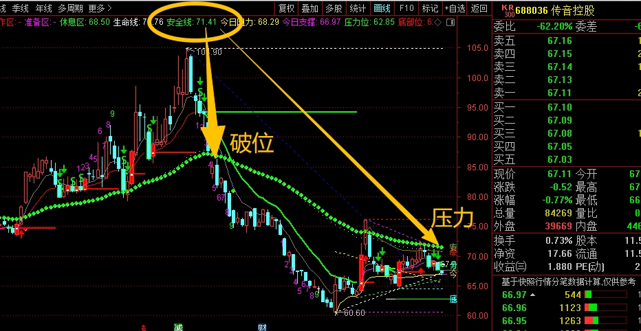 $传音控股(SH688036)$ 中期走势偏弱了,主要是前面高位回落下来,跌破了安全线的支撑,没有能马上拉回去站稳,形成了破位趋势,这时候就要大幅减仓应对了,不然连续回落下来,就比较被动。目前来看整体趋势还是向下,暂时不考虑,同时也不要加仓。等站稳了安全线后再考虑。#炒股日记# #收盘点评#