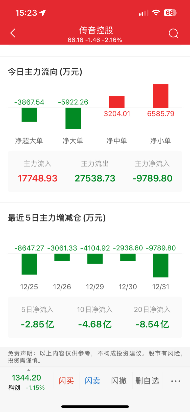 $传音控股(SH688036)$ 20个交易日跑了8个亿,唉,我是服了
