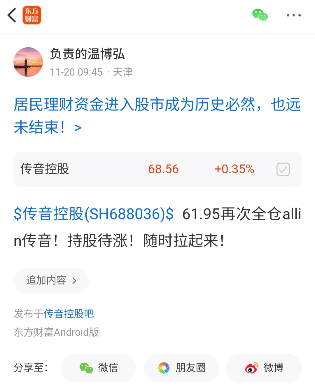 $传音控股(SH688036)$ 持股待涨!唱空的别在群里乱叫!不看好叫个屁!