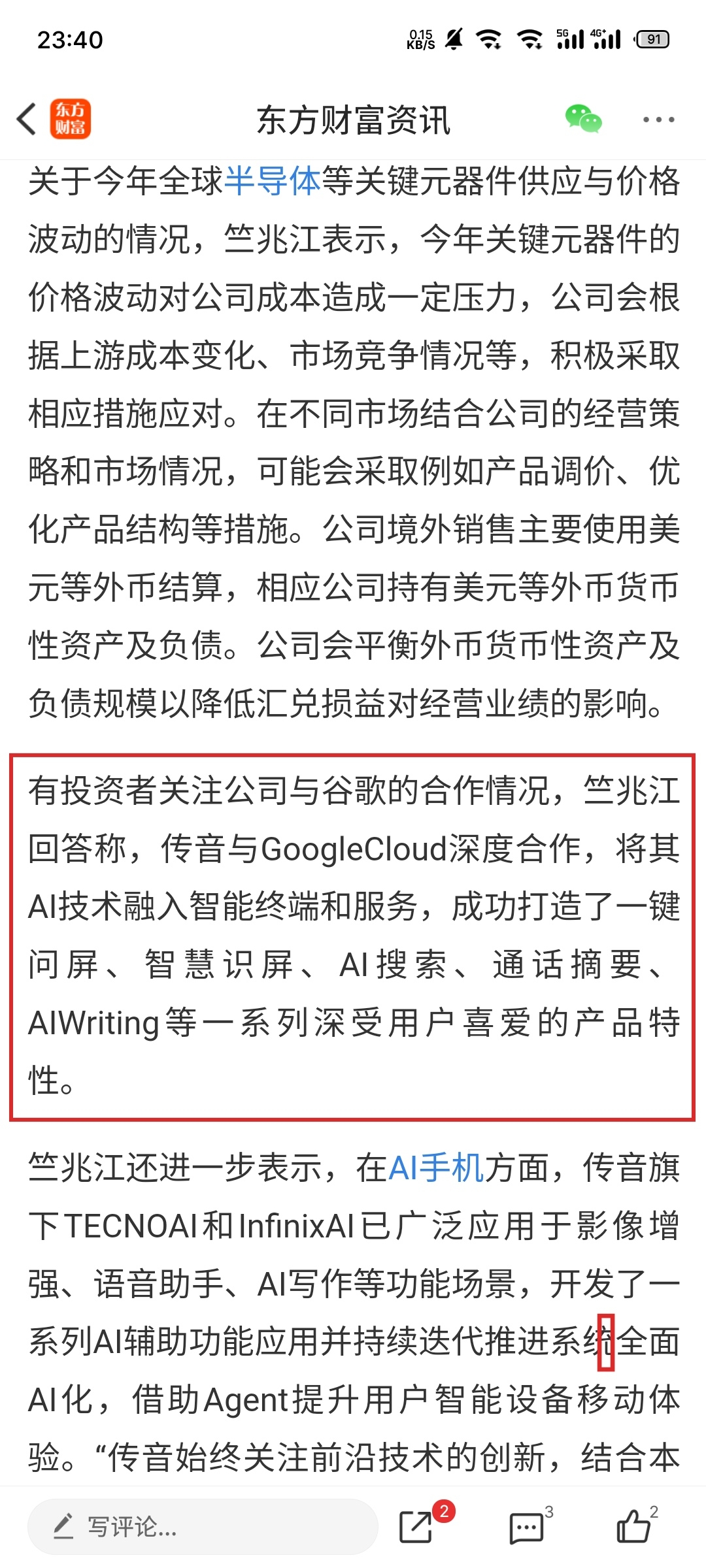 $传音控股(SH688036)$ 传音与谷歌有深度合作
