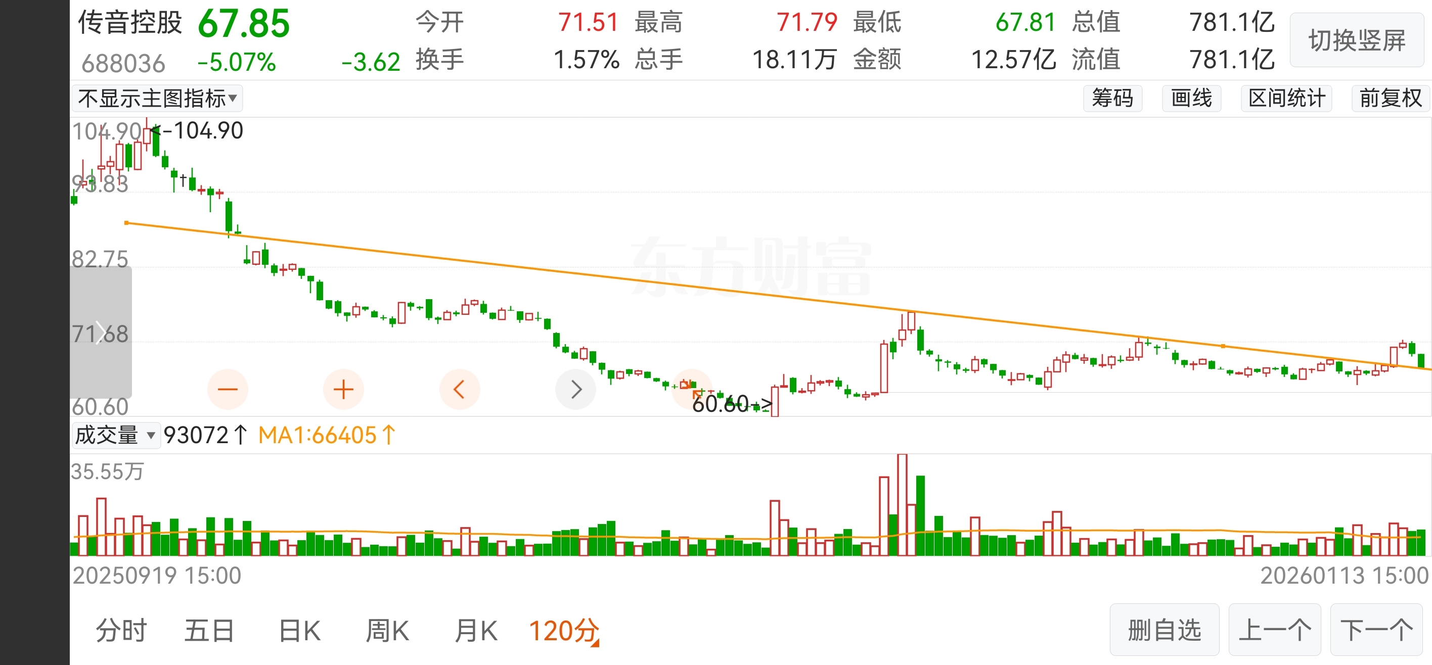 $传音控股(SH688036)$ 下降趋势线突破后的回踩,不要过分担忧