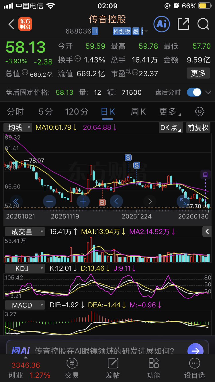 $传音控股(SH688036)$ 这票前期虽有大资金入场,但属于是慢钱,趋势扭转失败,果断跑路,小赚走人,目前很难说底在哪儿