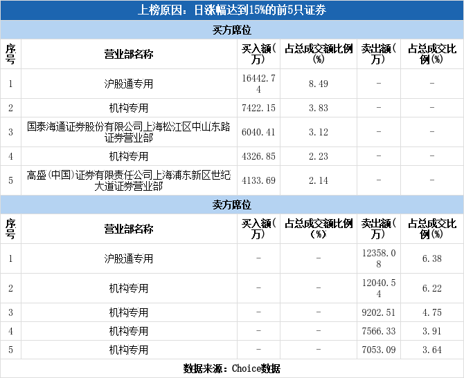 上交所2026年1月7日交易公开信息显示,芯源微因属于日涨幅达到15%的前5只证券而登上龙虎榜。芯源微当日报收190.79元,涨跌幅为20.00%,换手率5.31%,振幅16.72%,成交额19.36亿元。