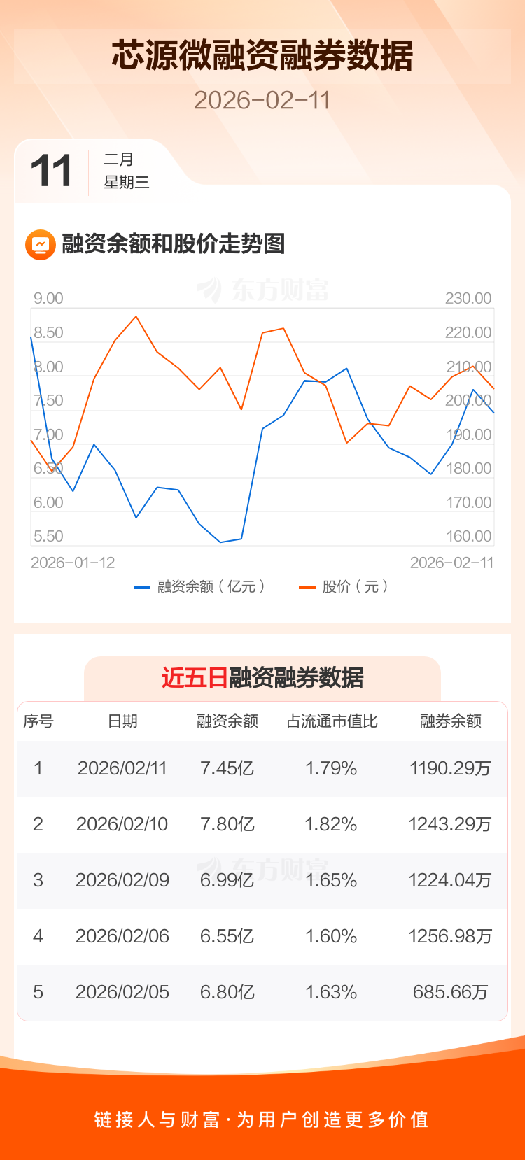 交易所最新数据显示,芯源微于2026年2月11日获融资买入4315.92万元,融资偿还7830.24万元,当日融资净偿还3514.32万元。目前,该股融资余额7.45亿,占流通市值比例为1.79%。