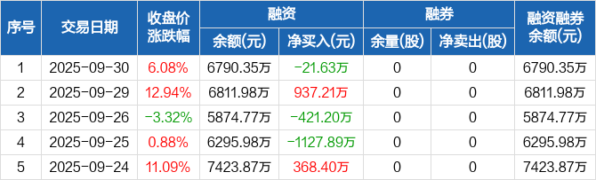 中科通达:融资净偿还21.63万元,融资余额6790.35万元(09-30)