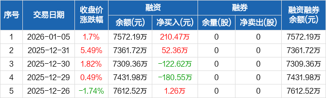中科通达:融资净买入210.47万元,融资余额7572.19万元(01-05)