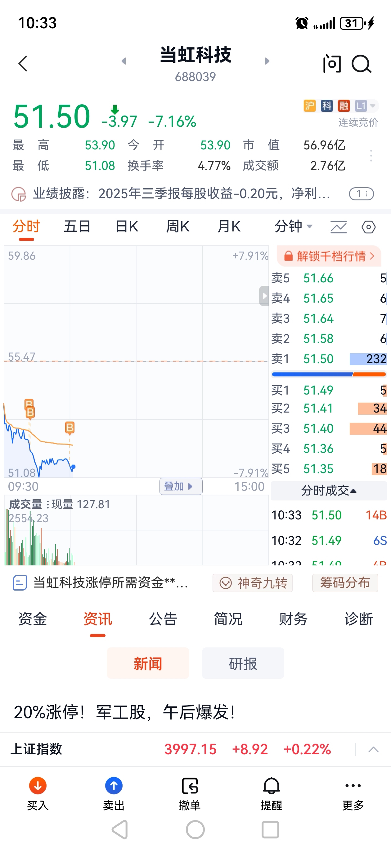 $当虹科技(SH688039)$ 早上已经补完仓了,希望今天能做个T