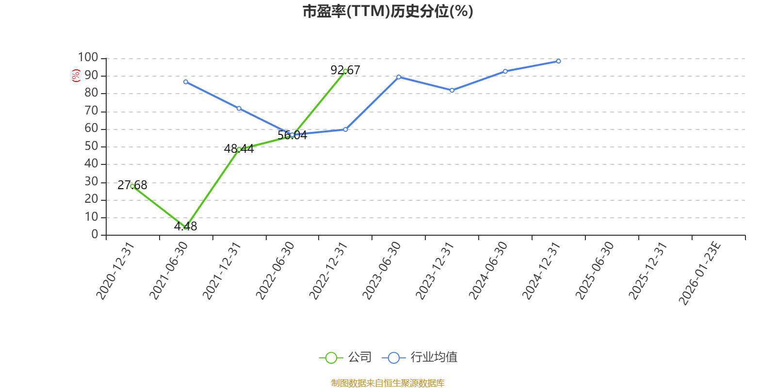 以本次披露业绩预告均值计算,公司近年市盈率(TTM)图如下所示:
