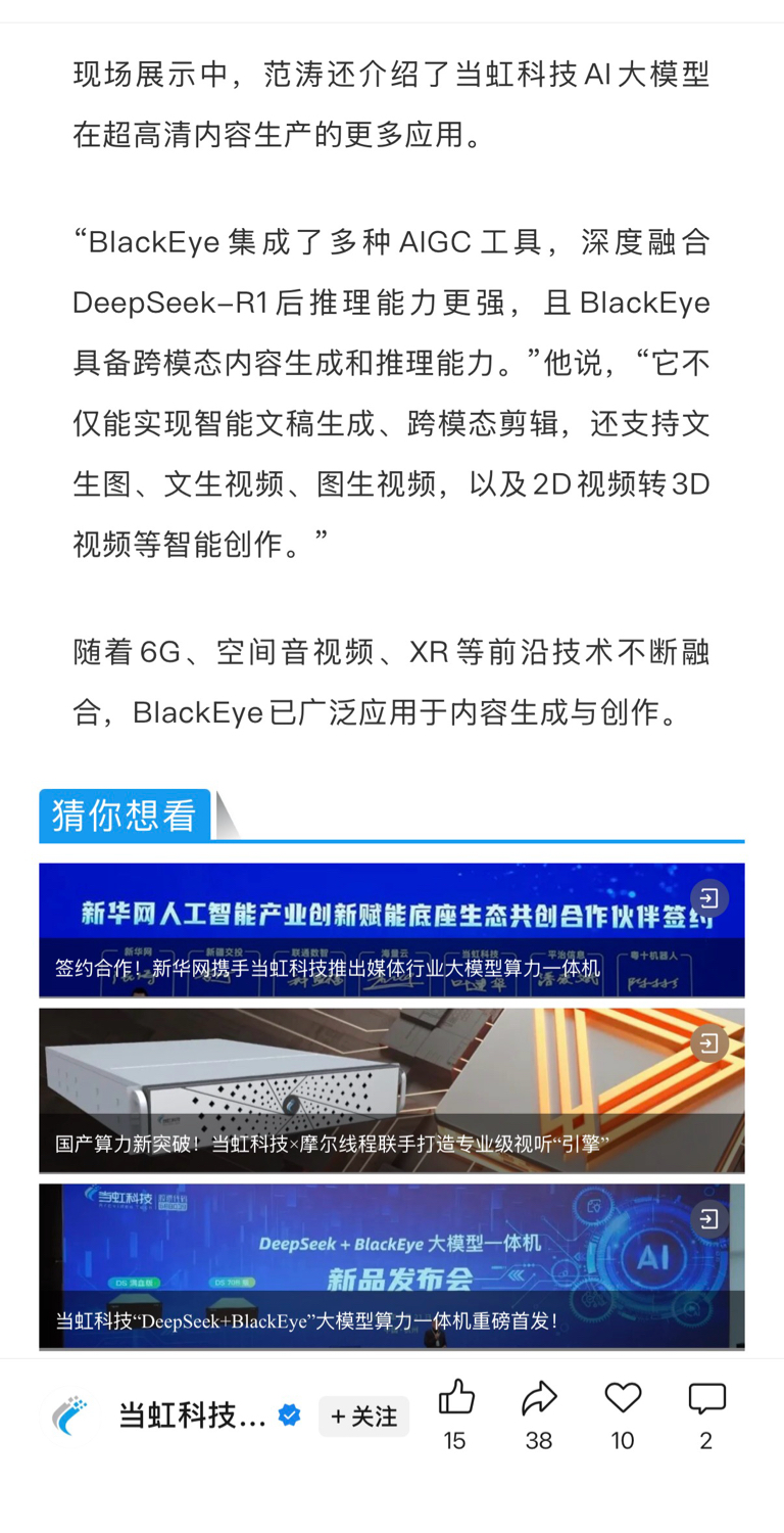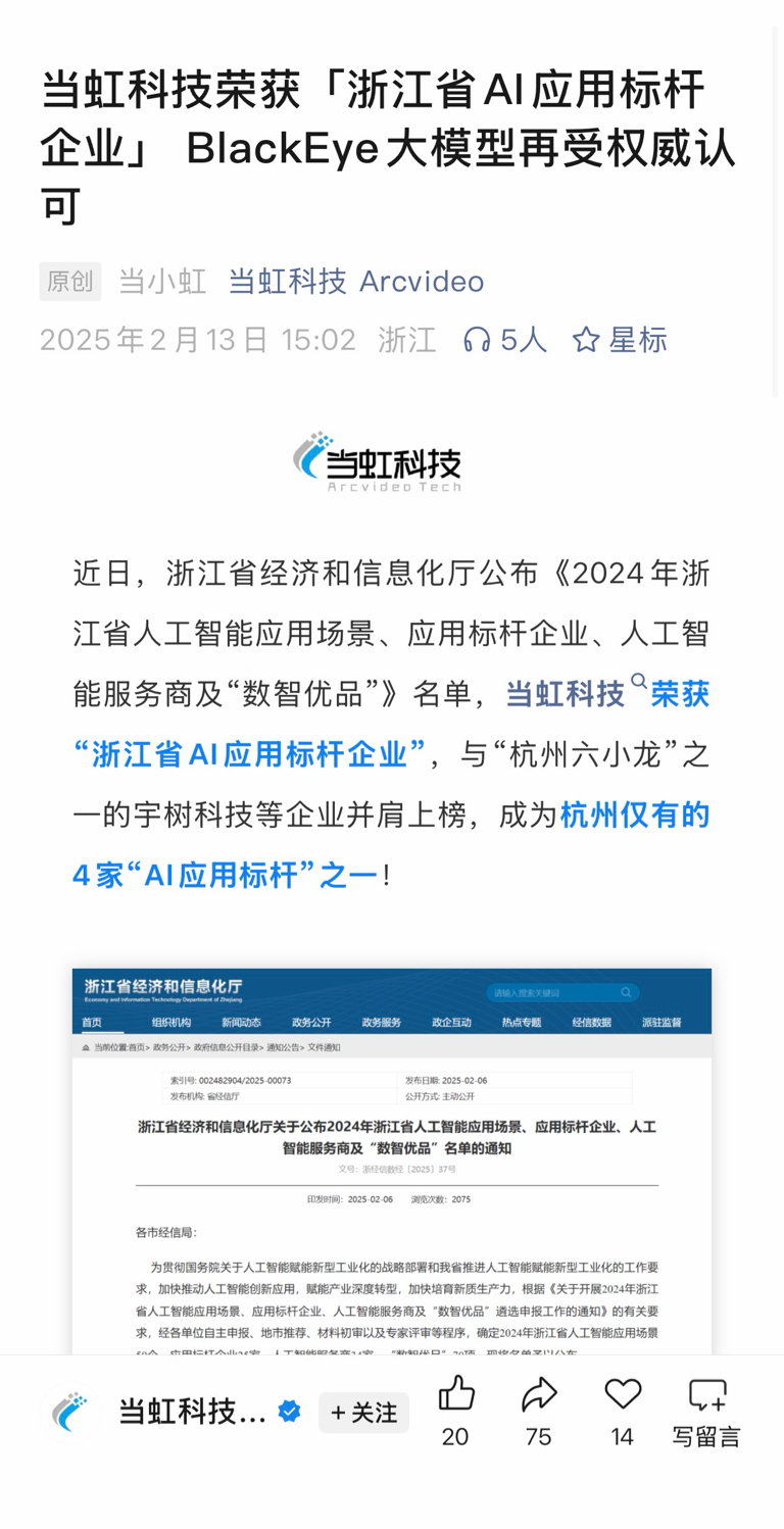 当虹科技,浙江省AI应用标杆!全省仅4家!新华社、央视等央媒,抖音(字节)等的重要合作方