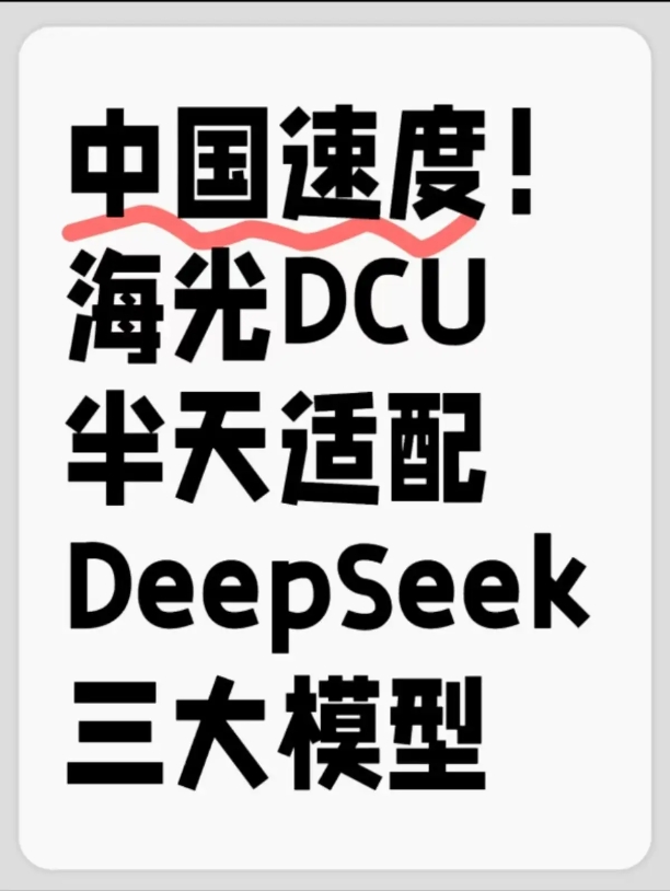$海光信息(SH688041)$ 中国速度!海光DCU半天适配Deepseek三大模型