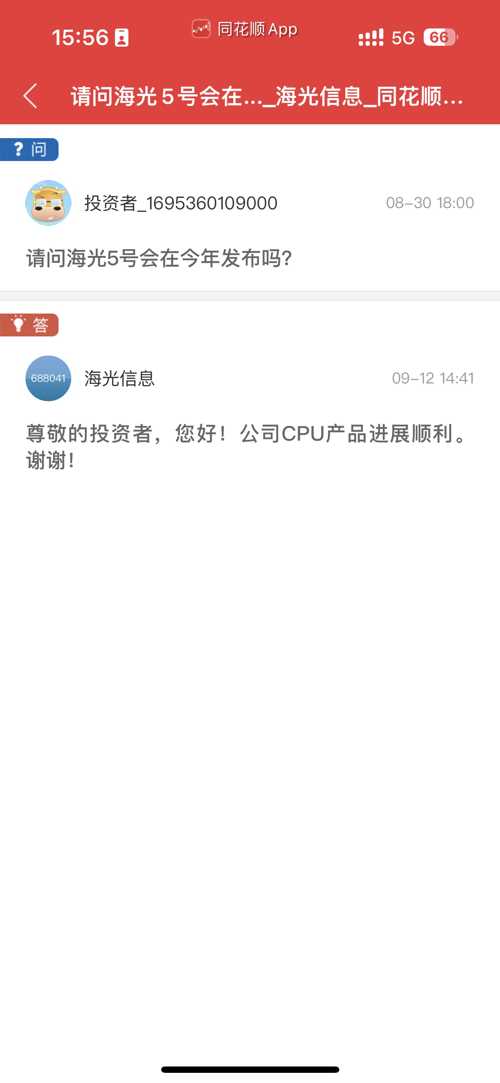 海光5号:海光5号的研发进展顺利,公司将根据市场需求和产品的开发进度,适时发布相关信息。