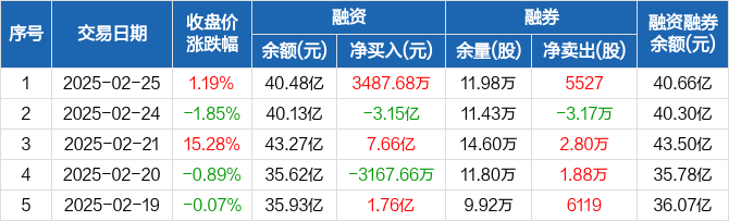 海光信息:融资净买入3487.68万元,融资余额40.48亿元(02-25)