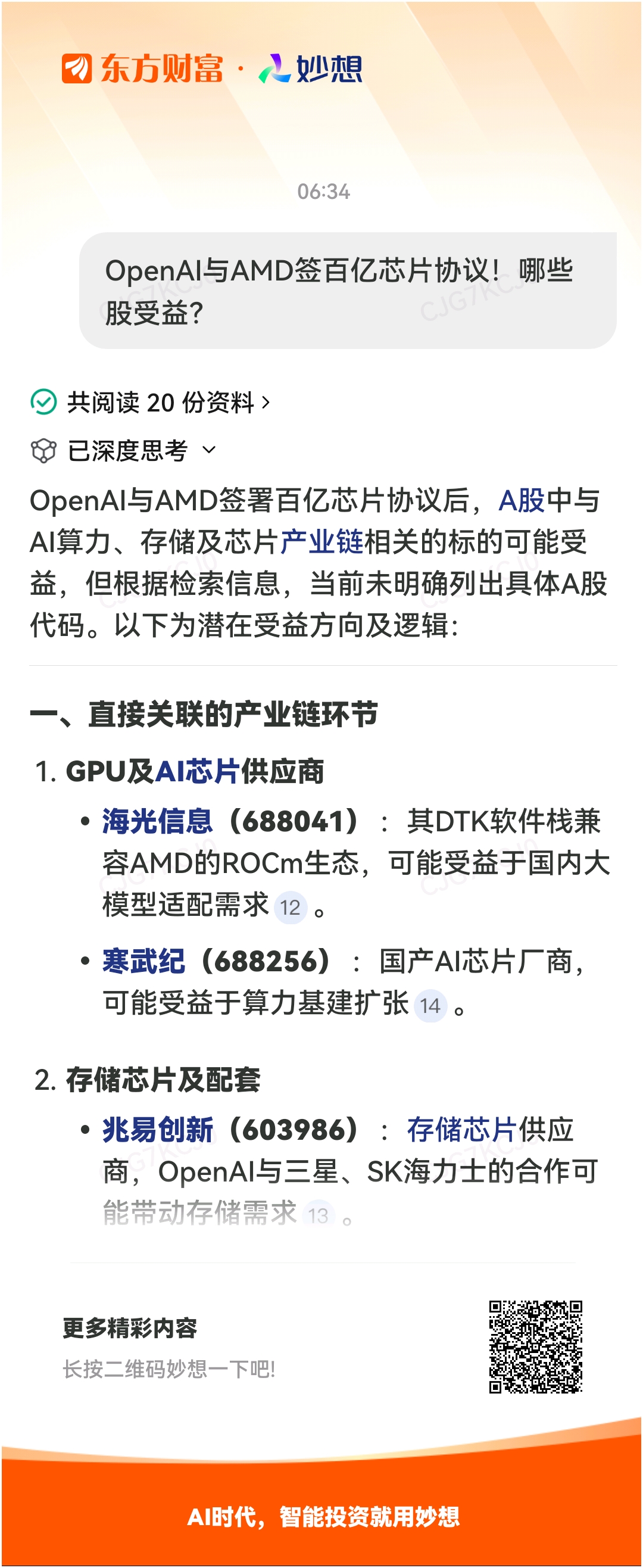 妙想一下:OpenAI与AMD签百亿芯片协议!哪些股受益?国产算力替代加速不可避