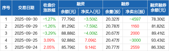 海光信息:融资净偿还3.5亿元,两市排名第九(09-30)
