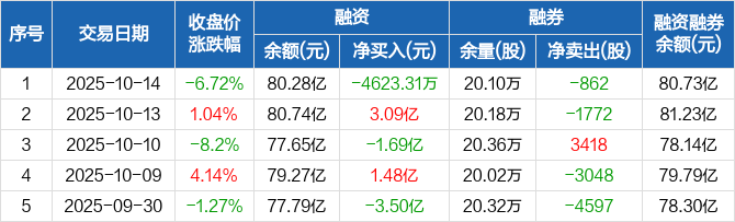 海光信息:融资净偿还4623.31万元,融资余额80.28亿元(10-14)