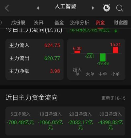 你看好后市人工智能,可市场机构抱团主力看好吗?是在诱多出货还是高位震荡净流出?看看主力资金流动态,颠覆你的三关: