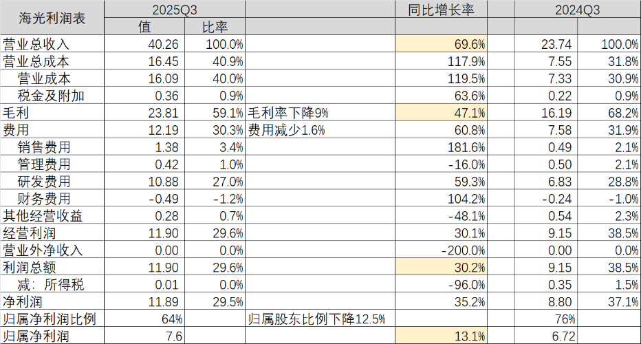 请教大神,海光第3季度归属利润同比只有13%的原因分析,为什么大家都没有关注“归