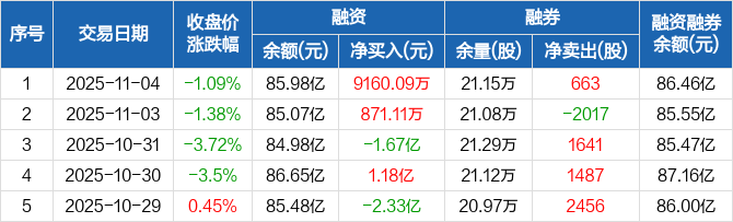 海光信息:融资净买入9160.09万元,融资余额85.98亿元(11-04)
