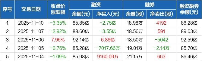 海光信息:融资净偿还2.75亿元,两市排名第三(11-10)