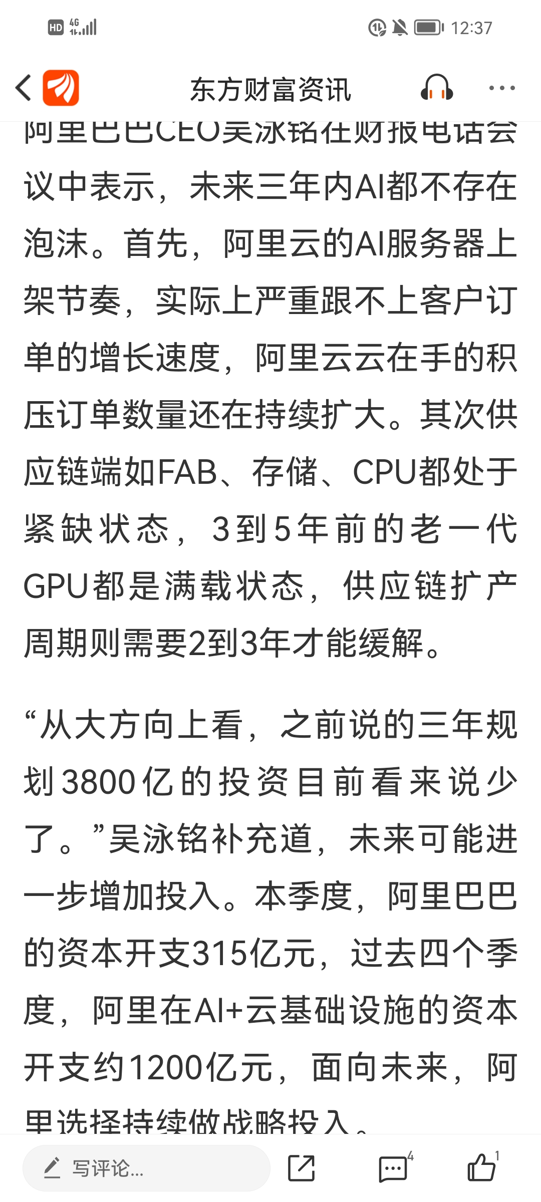 阿里掌舵人回应ai泡沫论,与阿里本季度资本支出超预期;叠加米锅通胀率下降,新增就