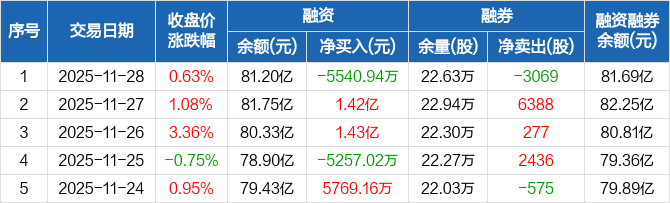 海光信息:融资净偿还5540.94万元,融资余额81.2亿元(11-28)