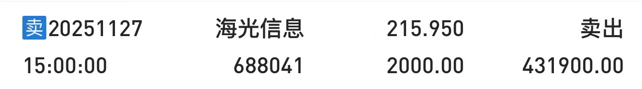 星期四高位没有卖,到尾盘气的把2000股海光信息全部清仓了,昨天没看,今天看抖音
