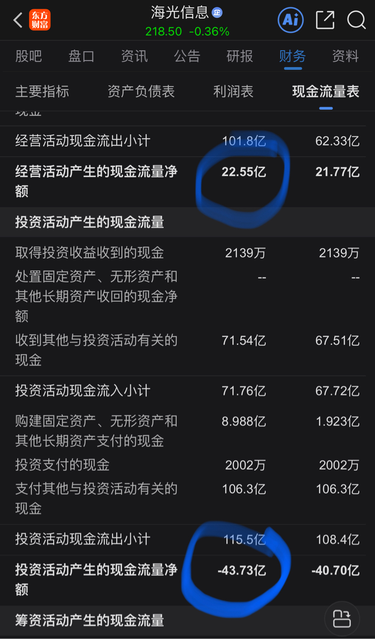 $海光信息(SH688041)$ 营收几十亿市值 5000 亿我就不说了,我请大佬分析了海光的财报发展非常严重的问题:20 亿的经营现金净流入,但是 45 亿的投资现金净流出!专家给姐姐指出了其中的深层问题姐姐不便展开讨论,只是提醒一下风险而已,不要说寒冬来临的时候你还穿着短裤