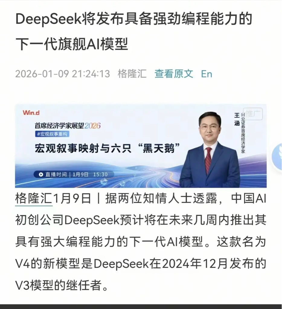 重磅!新一代AI大模型,DeepseekV4!2月春节期间,即将发布!大家还记得