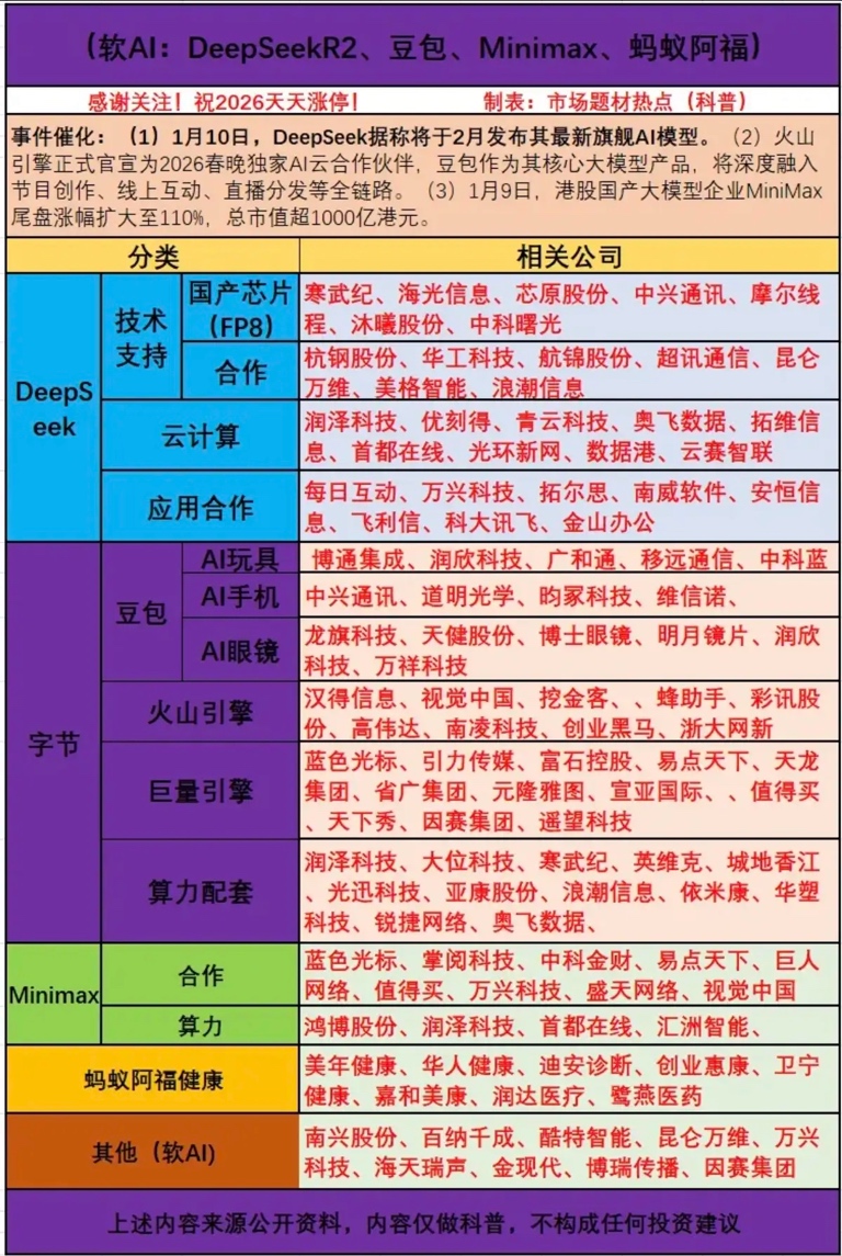 相关AI模型:核心龙头股整理: