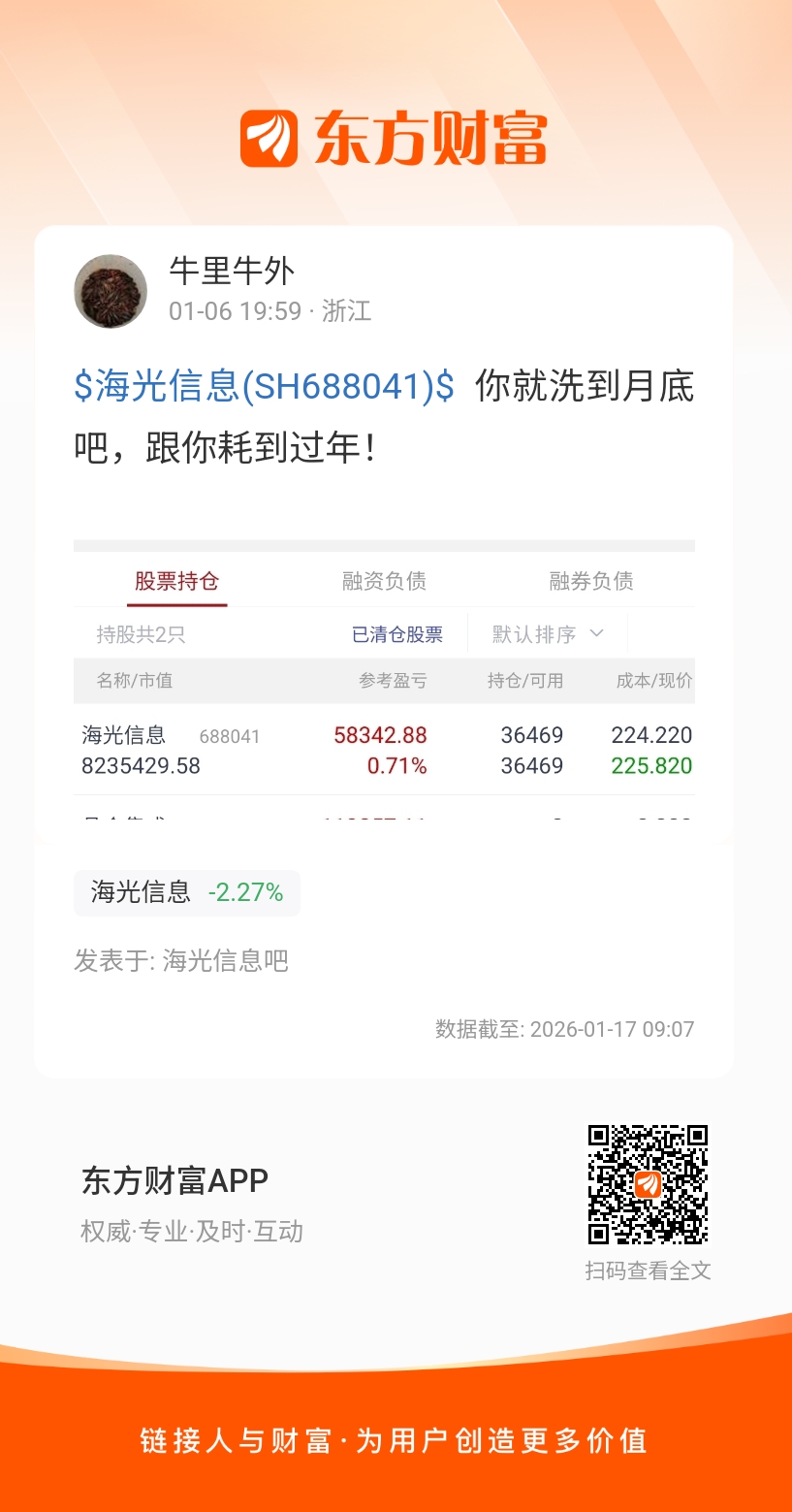 $海光信息(SH688041)$  你就洗到月底吧,跟你耗到过年!